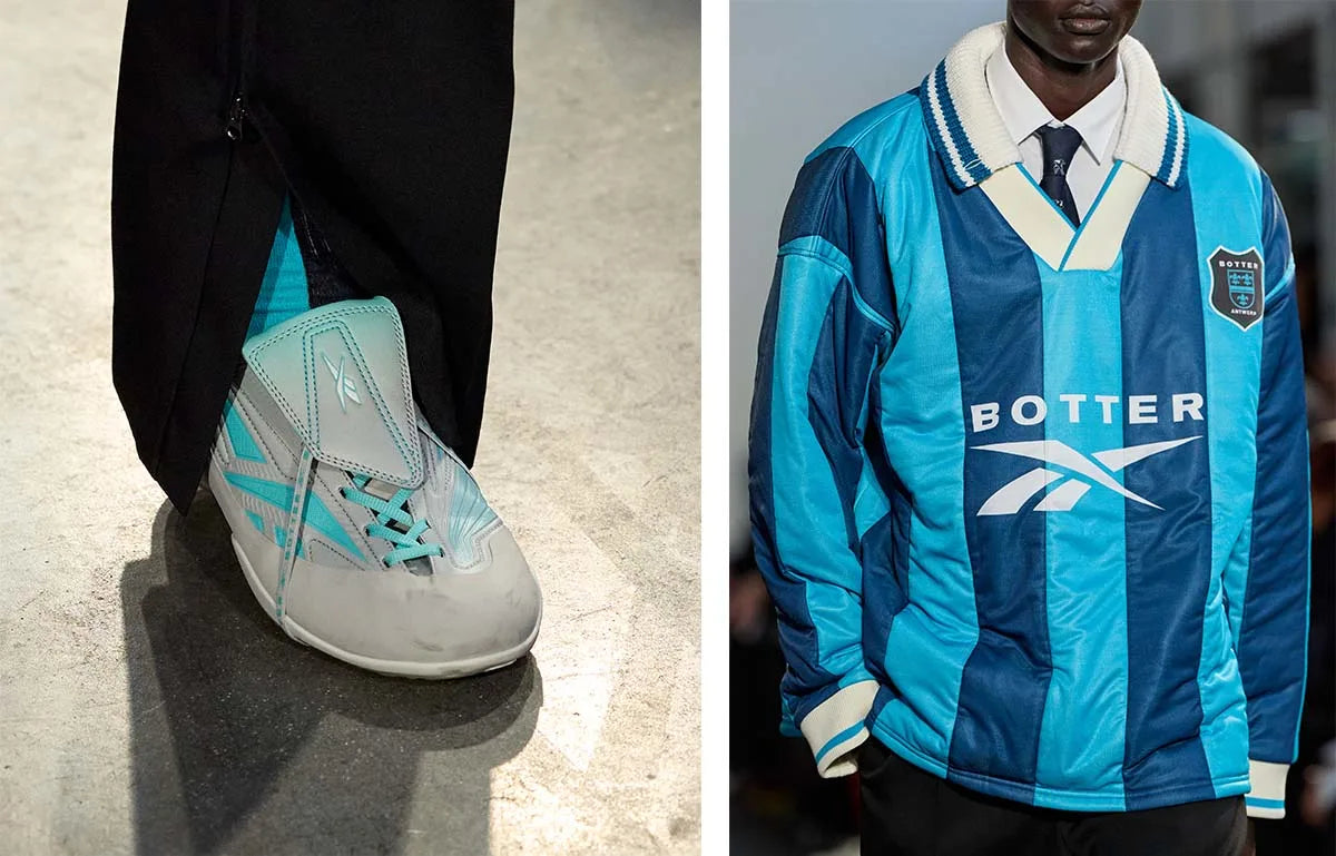 A mais recente colaboração entre Botter e Reebok estreou no desfile da marca em Paris e, inspirada na cultura do futebol de rua do Caribe - especificamente na ilha de Curaçao, a colaboração ofertou uma "chuteira" que incorpora elementos azul água característico da Botter.