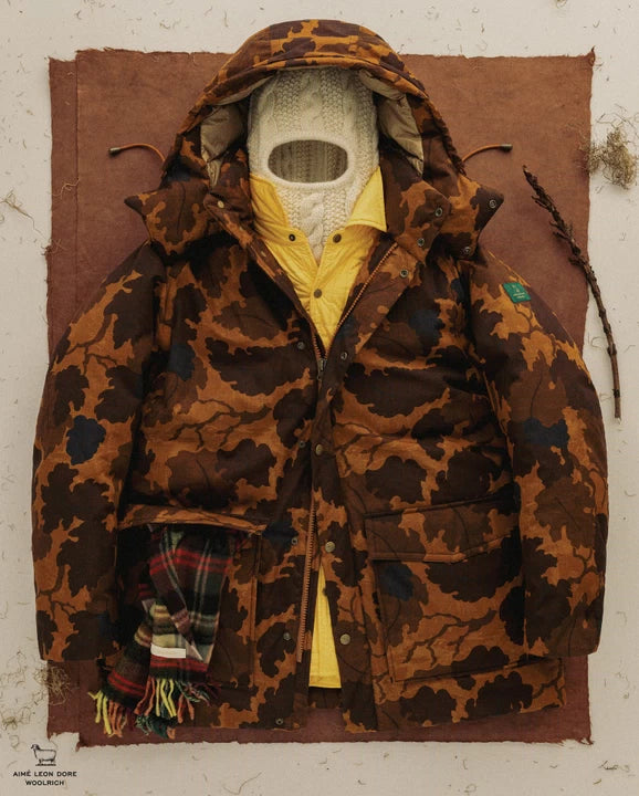 A cápsula oferta conjuntos compostos pela Aleutian Parka - Aimé Leon Dore / Woolrich Black e a Camo Aleutian Parka - Aimé Leon Dore / Woolrich Brown Camou, uma em um preto atemporal, bem como em uma camuflagem perfeita para o outono.