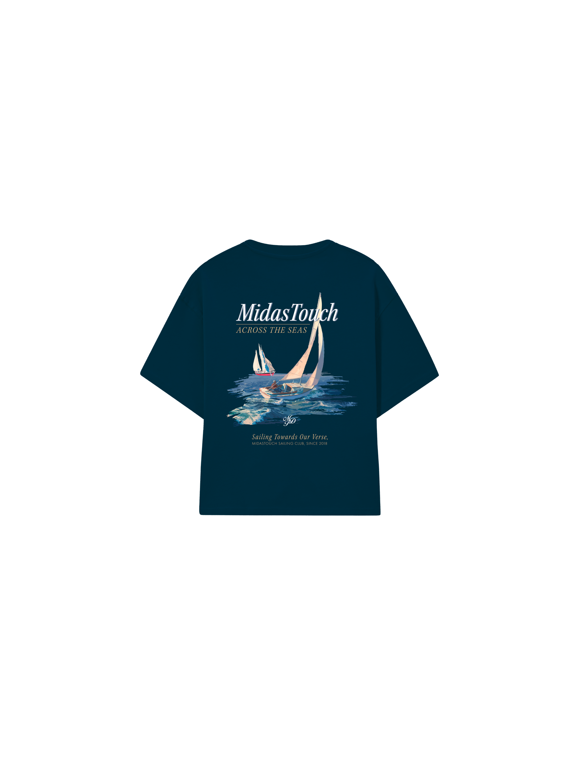 Camiseta Boxy Malhão Midas Touch Boats "Navy" nova, disponível à pronta entrega.