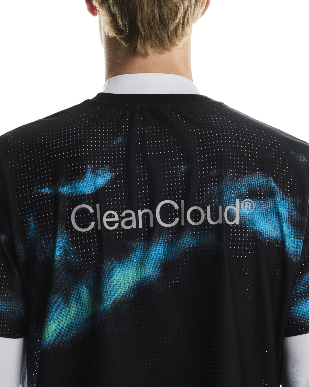 Uma camiseta respirável inspirada nas provas de corrida, com poliéster CleanCloud® ultramacio e elástico.