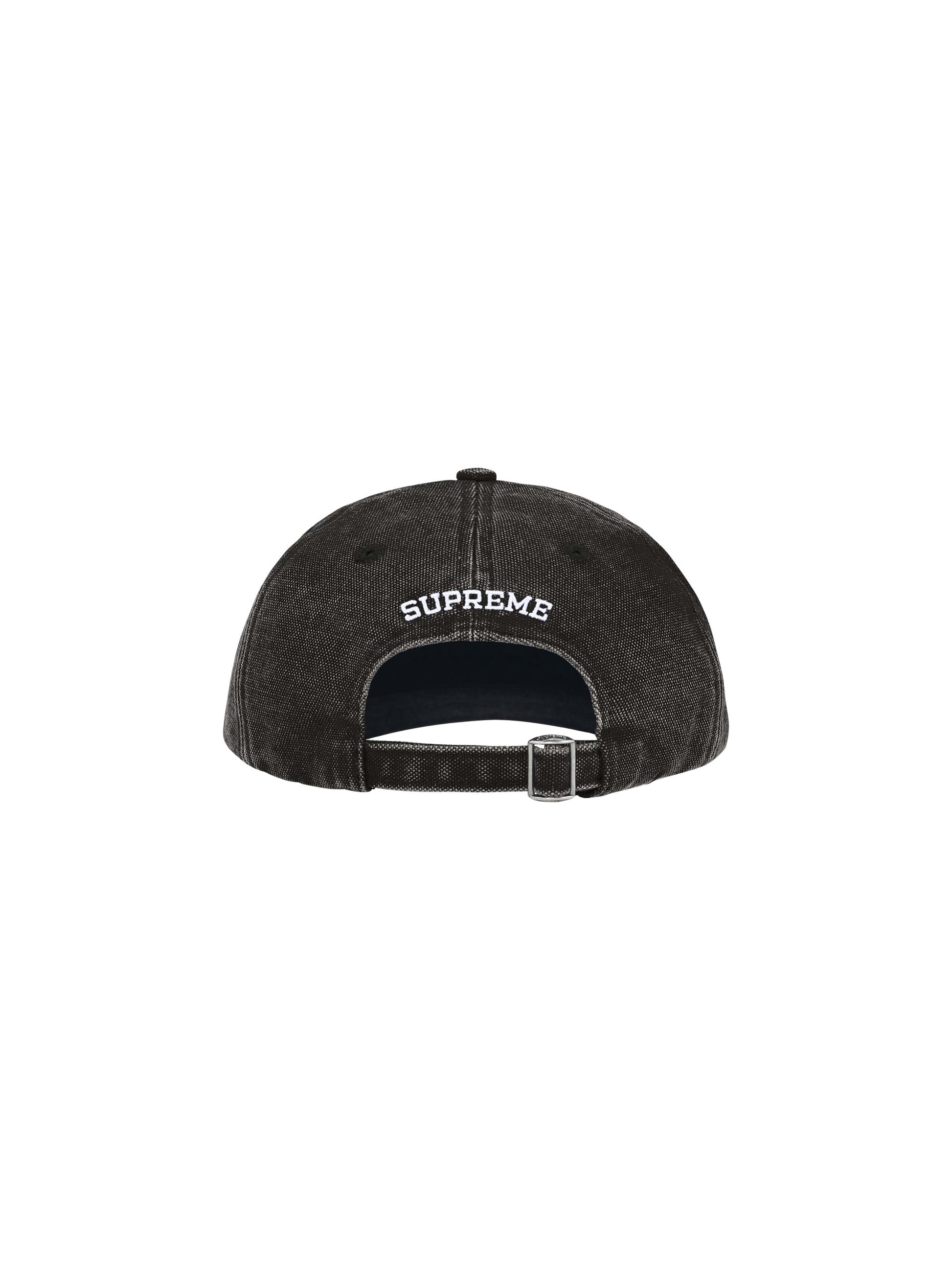Confeccionado em algodão 100%, apresentando uma tonalidade clássica de preto. Possui a tradicional aba curva, estrutura de seis painéis e o logotipo S da Supreme bordado. O ajuste é feito por uma fivela.